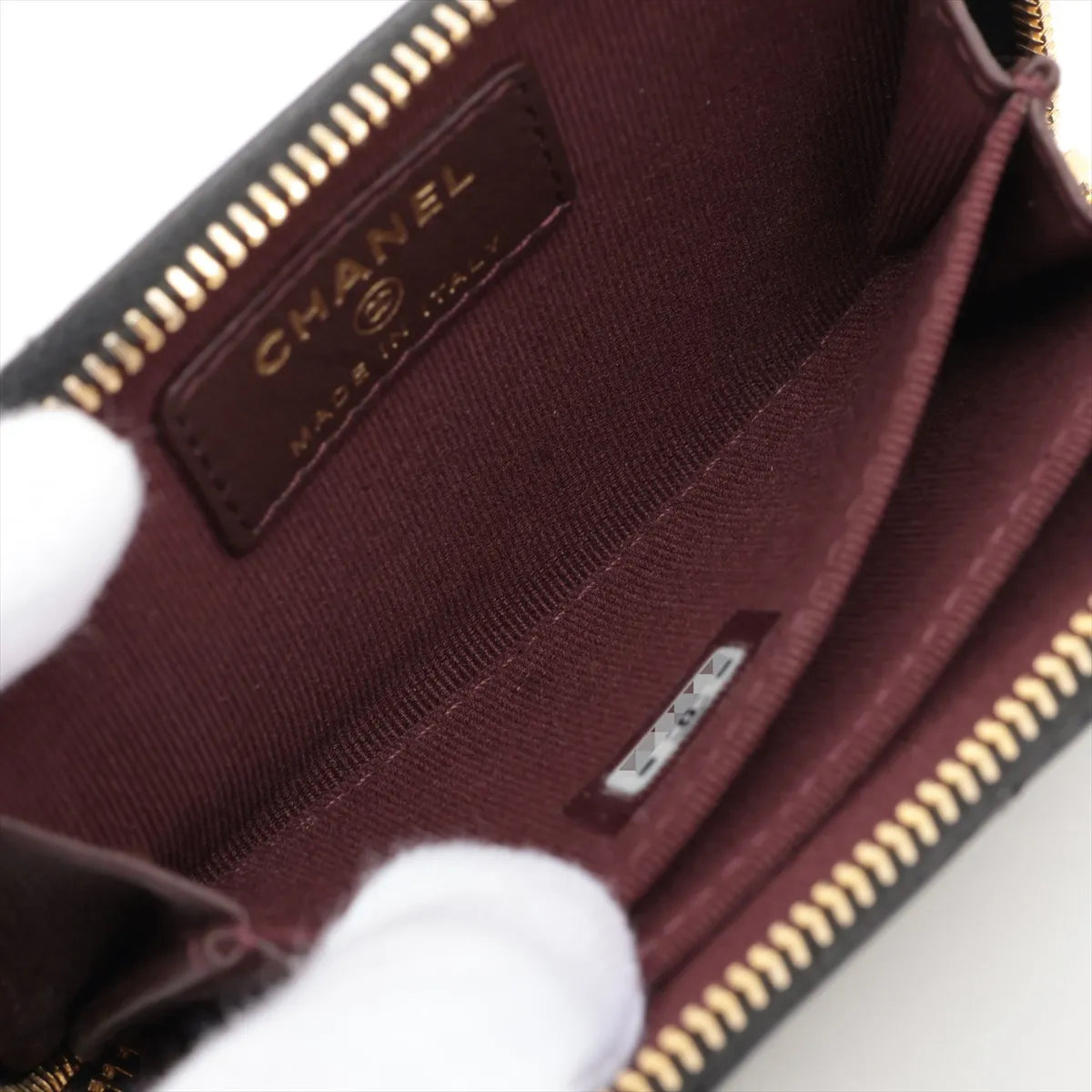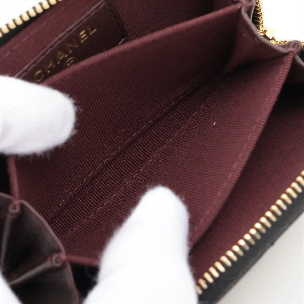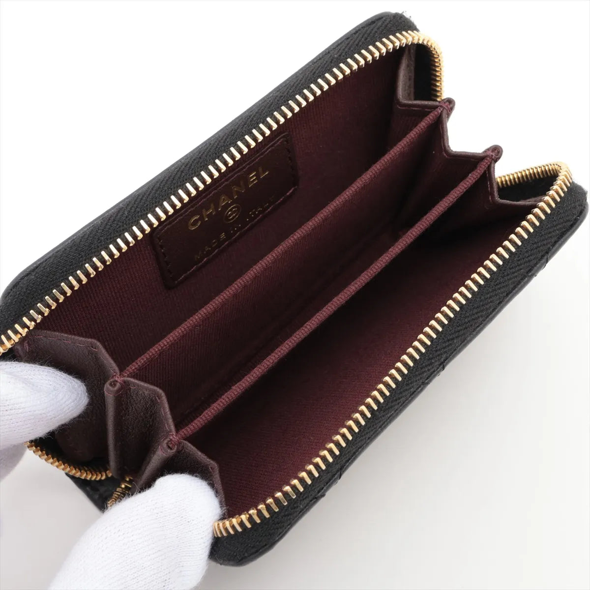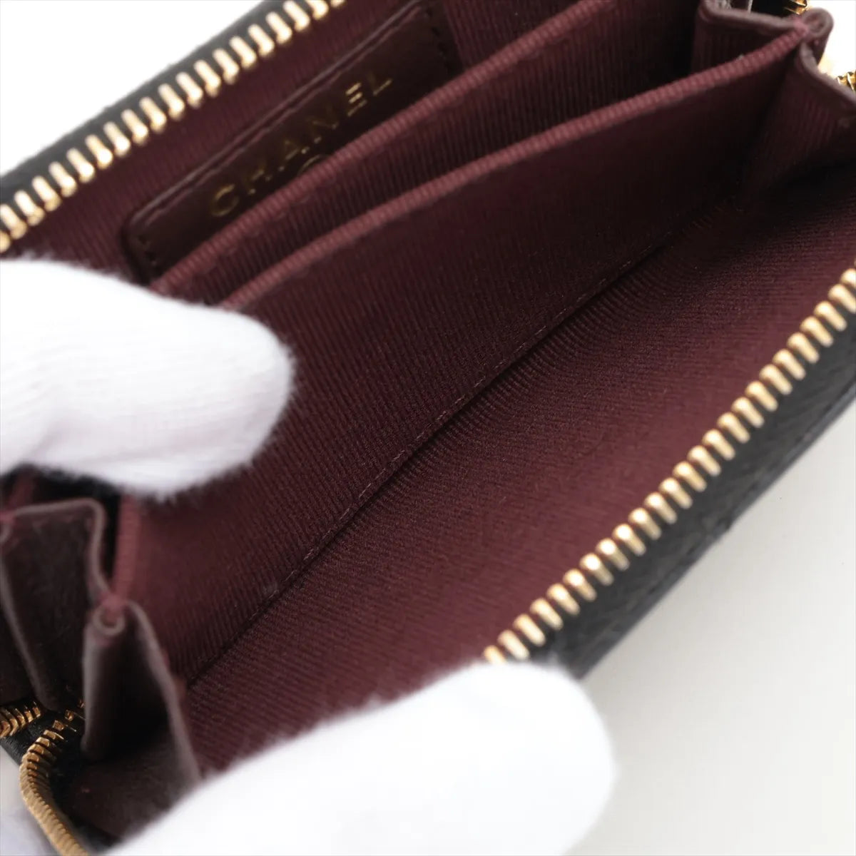Black caviar calfskin leather coin purse with zip closure