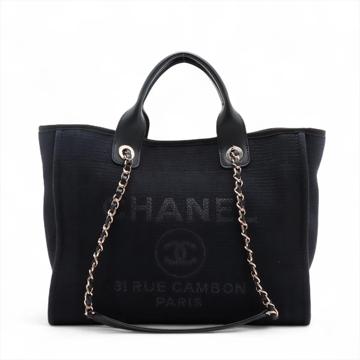 Chanel Black Canvas Deauville MM Shopping Tote [Clearance Sale]