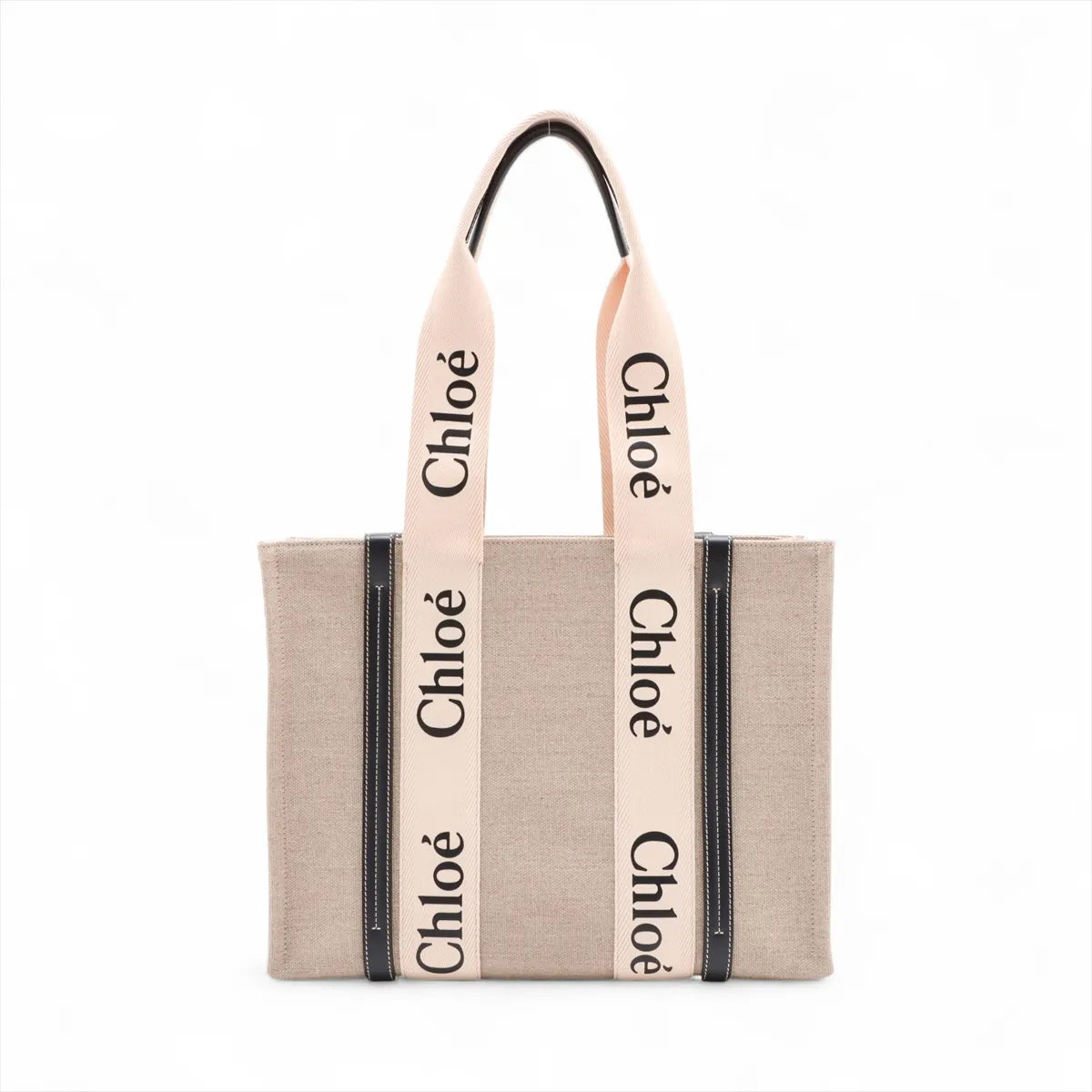 Chloe Black and Beige Canvas Medium Woody Tote Bag [Clearance Sale]