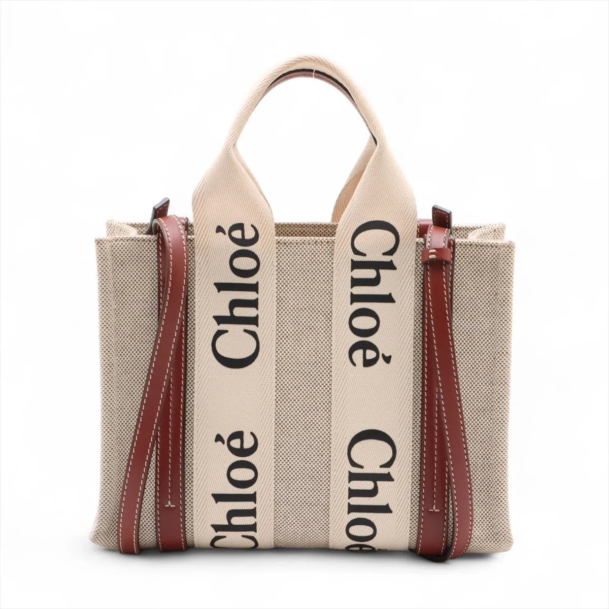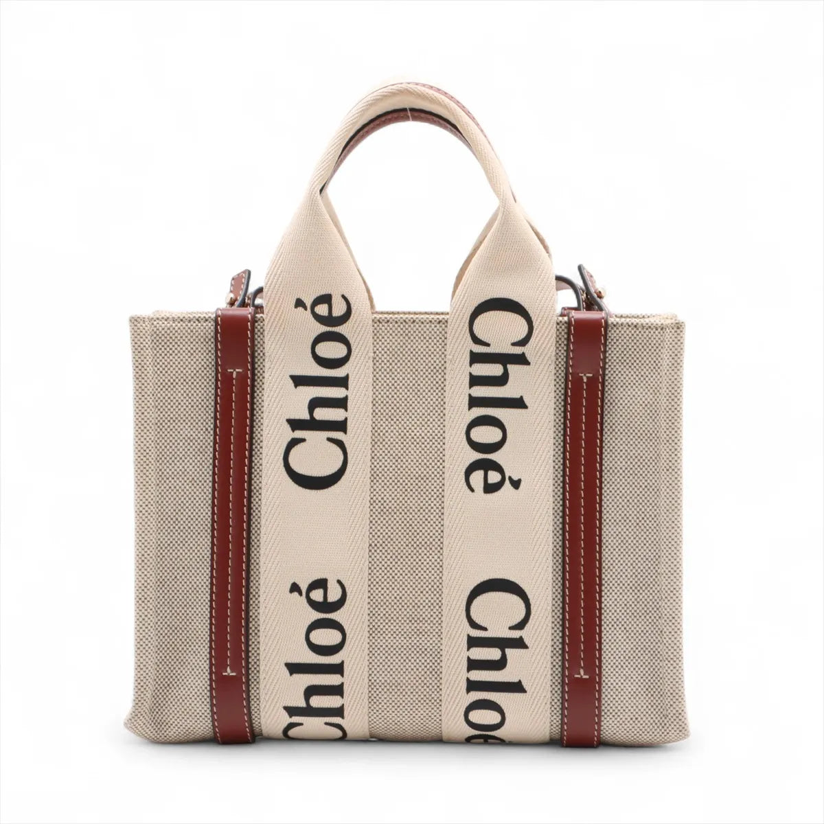 Chloe Brown and Beige Canvas Small Woody Tote Bag [Clearance Sale]