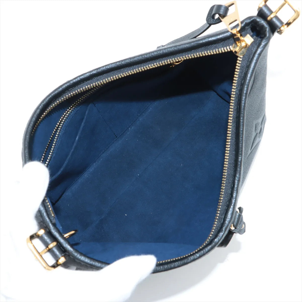 Black embossed monogram empreinte calfskin leather with black leather single shoulder strap